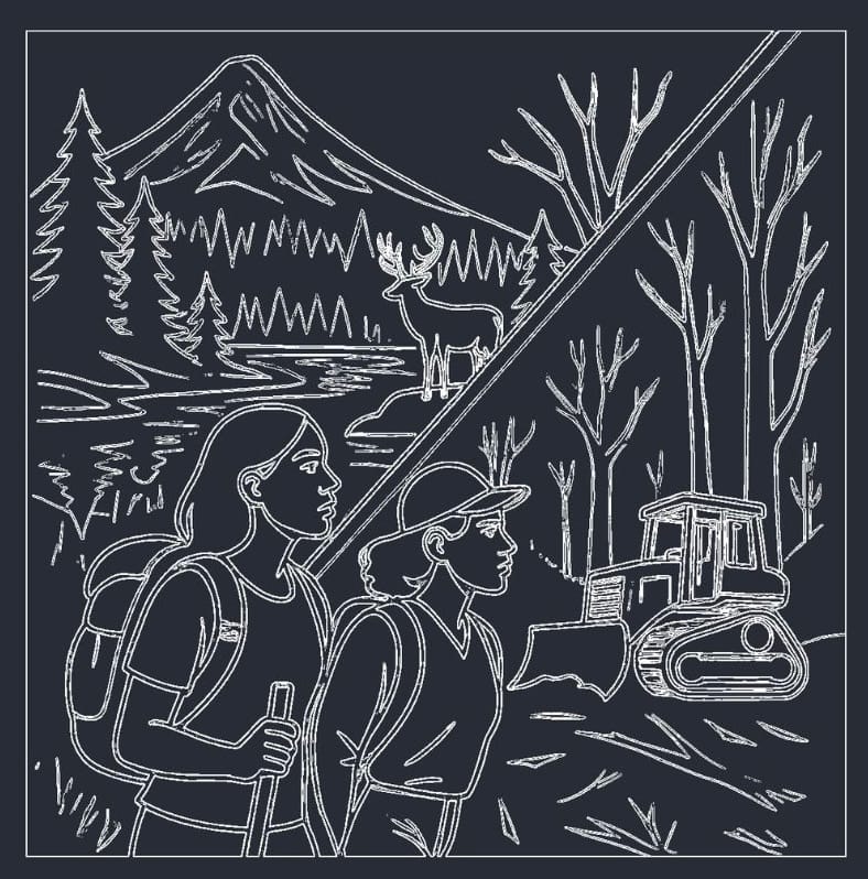 Human choices create two diverging futures. One path protects the systems that support life: forests, rivers, soil, and wildlife. The other path extracts without restraint, pushing ecosystems toward collapse. Structural thresholds remind us that the direction matters long before the damage is visible.